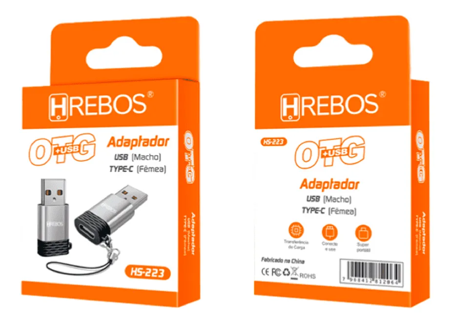 ADAPTADOR OTG USB MACHO - TIPO C FEMEA AD-209 HREBOS